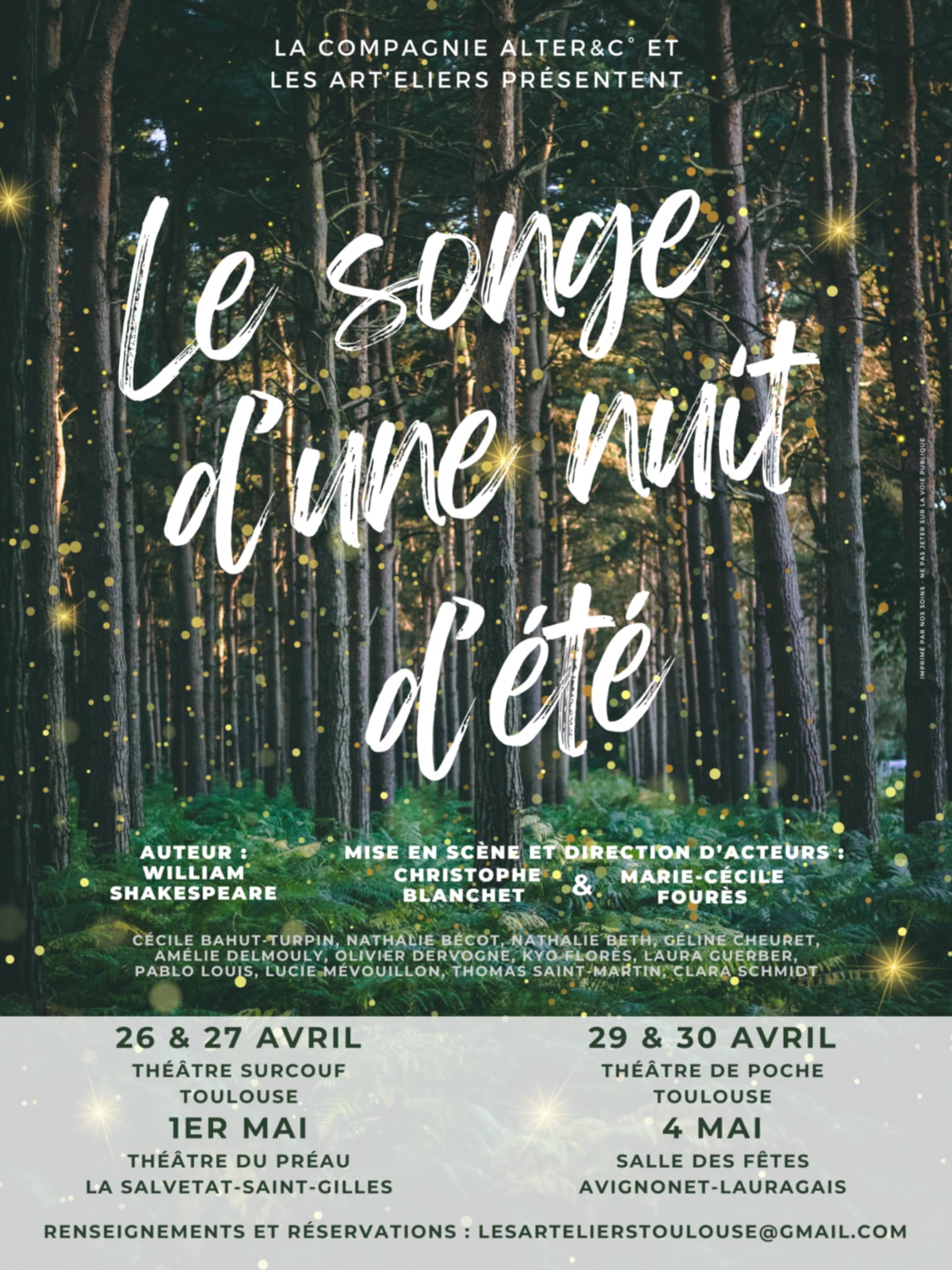 Représentations : samedi 2 & dimanche 3 mai (Théâtre Surcouf à Toulouse), lundi 4 & mardi 5 mai (Théâtre de Poche à Toulouse), mercredi 6 mai (Théâtre Le Préau à La Salvetat-Saint-Gilles) & dimanche 10 mai (Foyer Rural d’Avignonet-Lauragais).