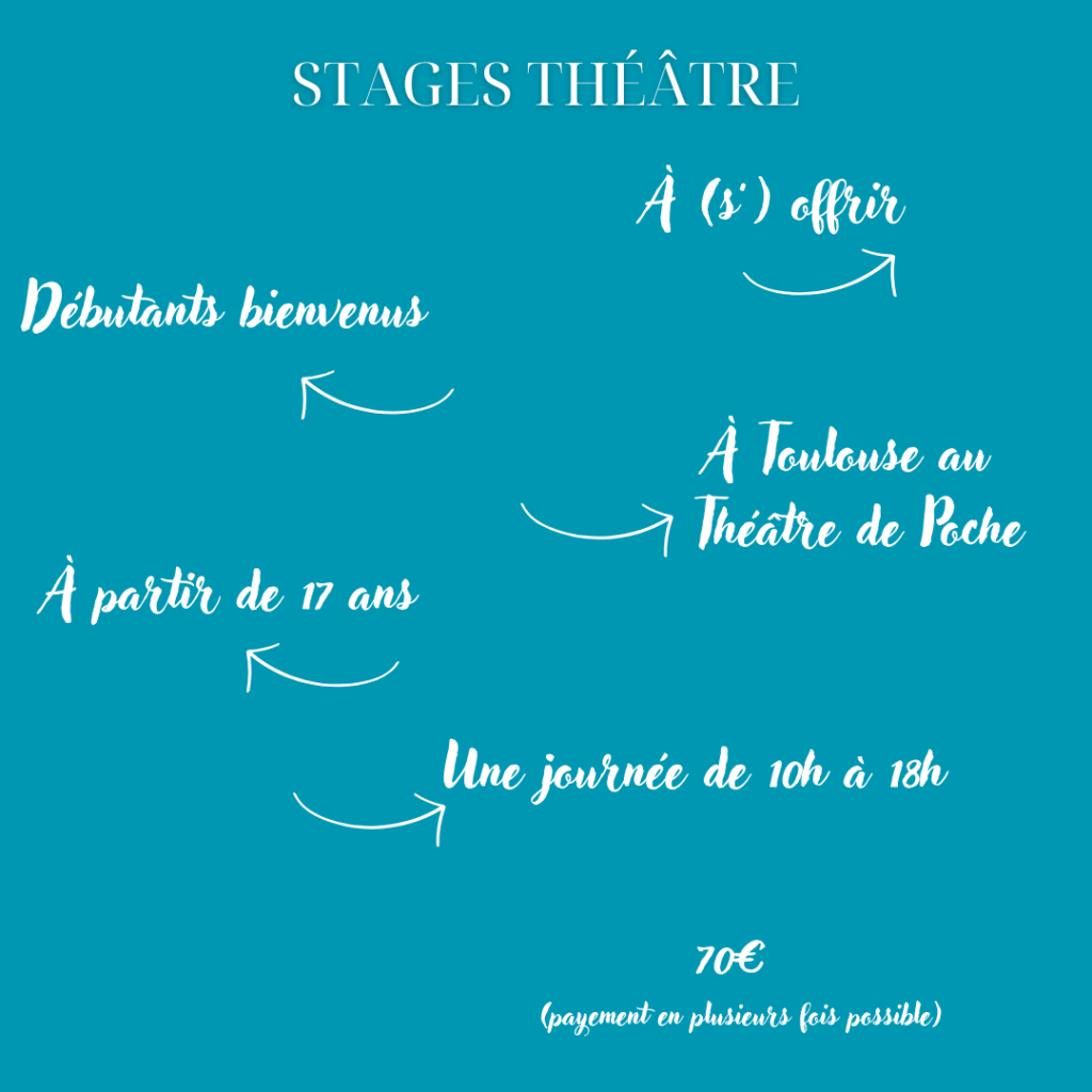 Une journée rien que pour soi, à offrir ou s’offrir. Une journée pour goûter et découvrir les joies du théâtre. Des jeux, de l’improvisation et un court travail du texte.